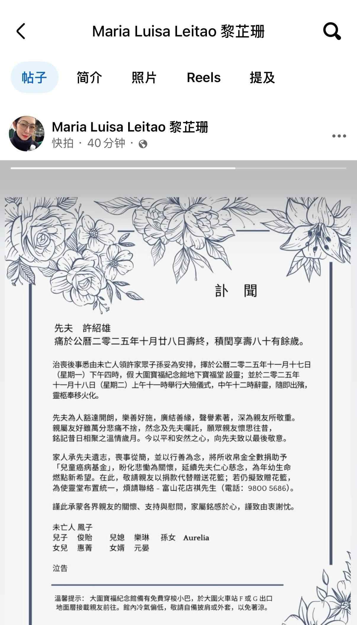 治丧后事悉由未亡人领许家众子孙妥为安排,择于公历二零二五年十一月十七日(...