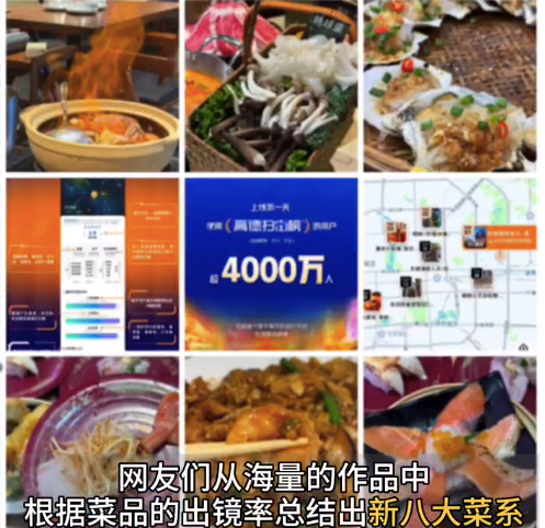 近日,高德扫街榜美食摄影大赛上线万。有网友根据菜品出镜率总结出了新八大菜...